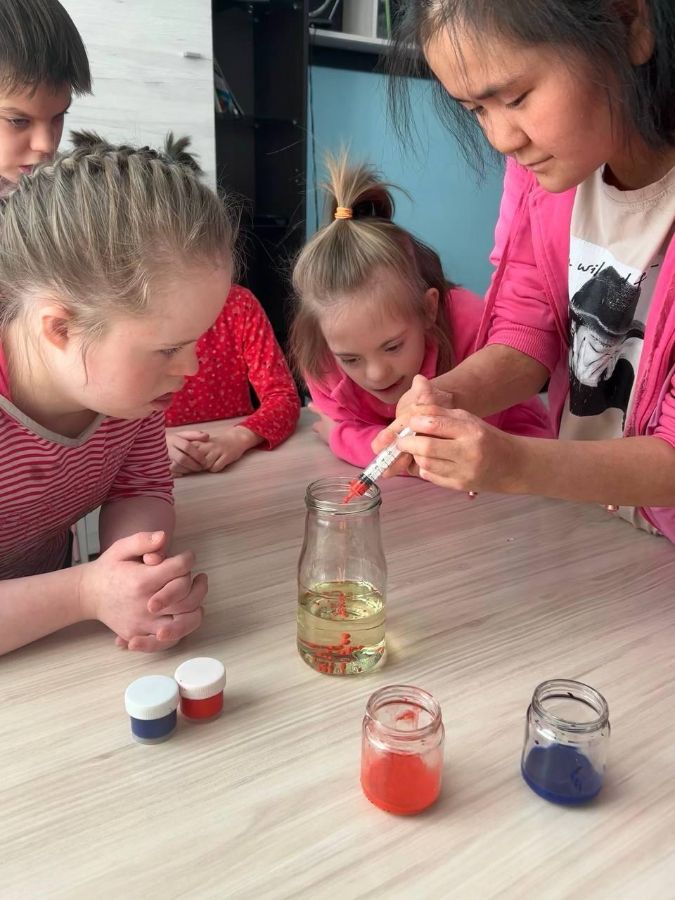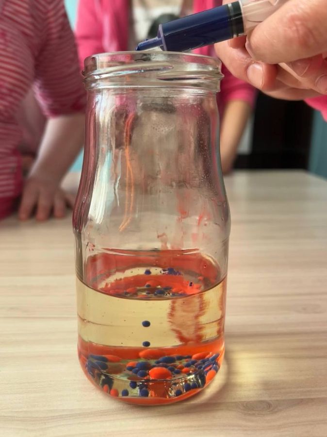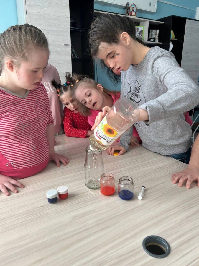 Наши девчата под руководством воспитателей провели занимательный эксперимент, который познакомил детей со свойствами воды и масла. Вы легко сможете повторить его дома!