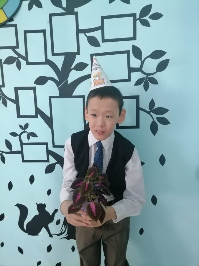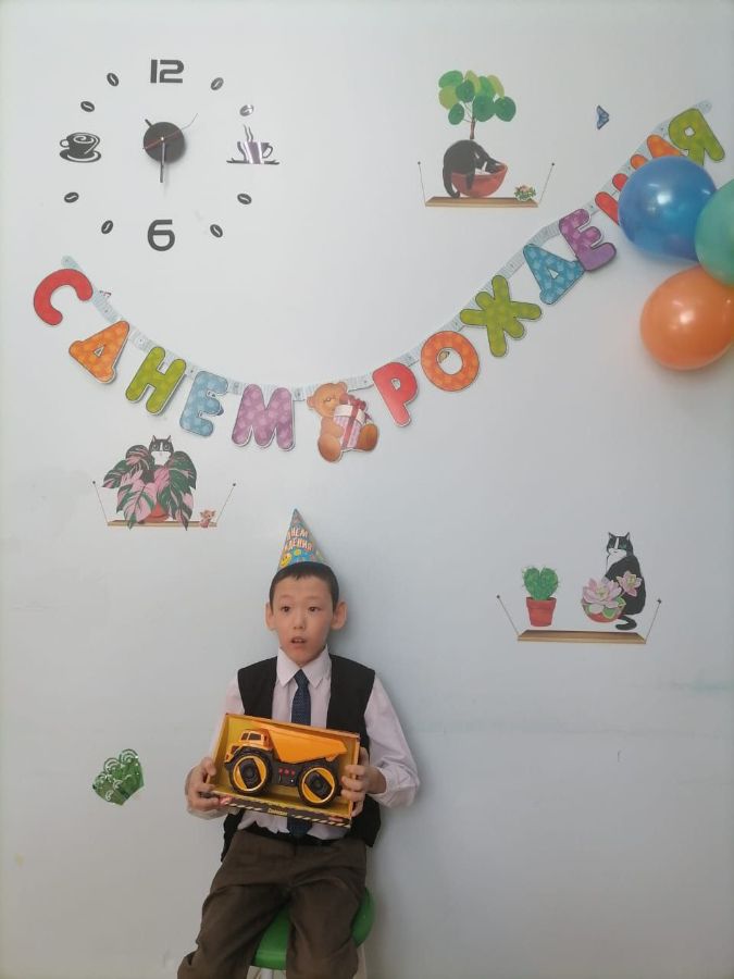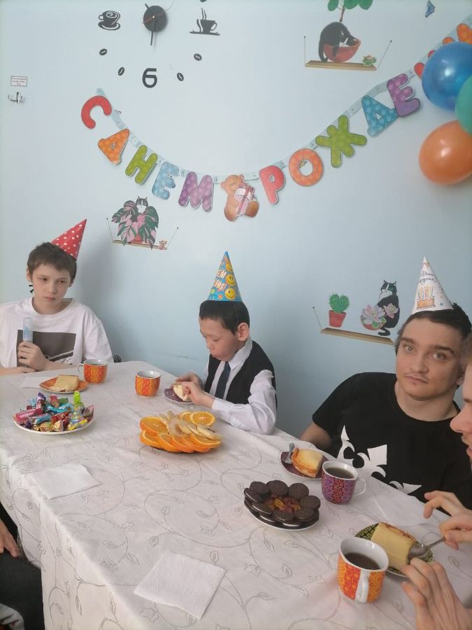 Ребята и воспитатель поздравили именинника с днём рождения за праздничным столом.
