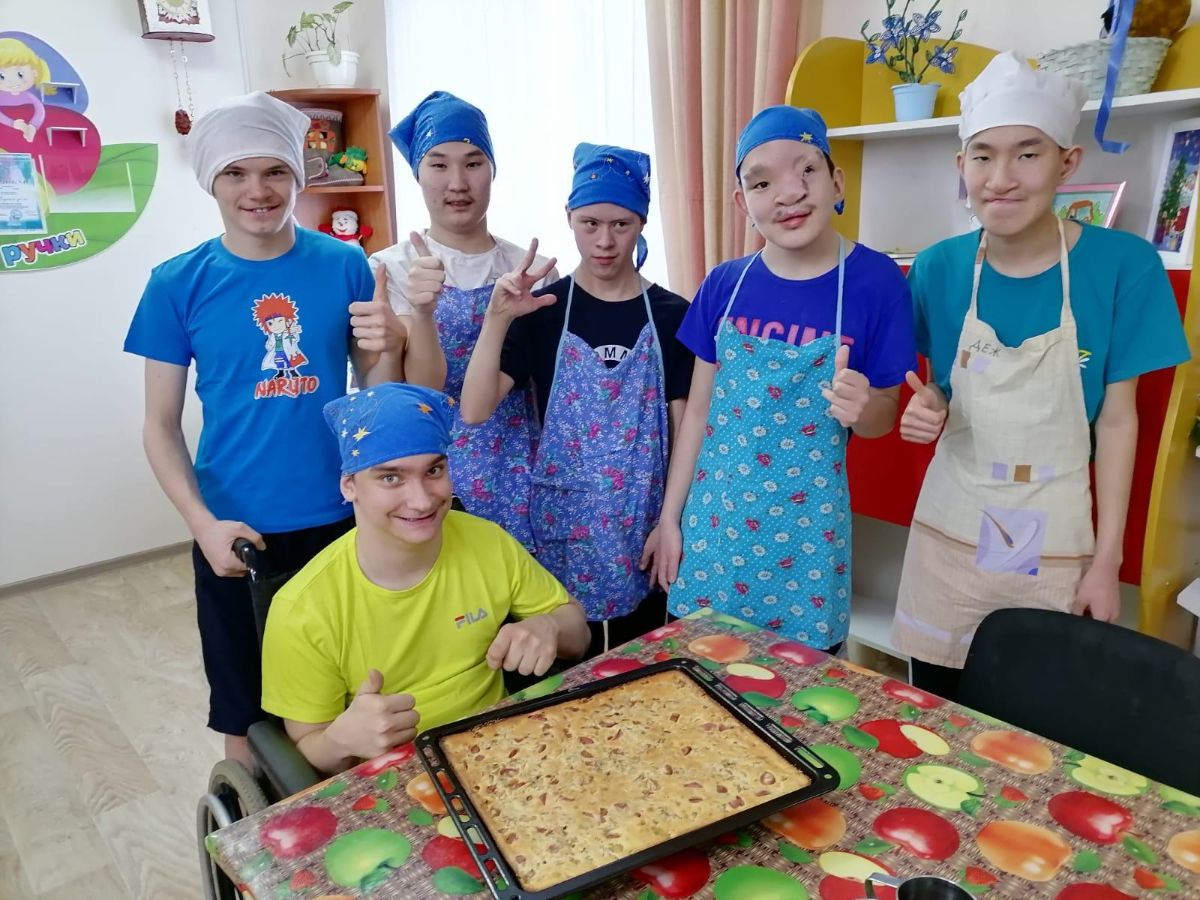 Занятия по домоводству дети посещают с огромным удовольствием. На одном из таких занятий мальчишки недавно готовили заливной пирог, посмотрите какая красота получилась!